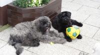 Deze dame is een dochter van onze Tessa. Ook zij is een forse bouvierteef met een koppig karakter, maar ook zeer speels. Het is een echte zware bouvier,die er ook echt staat.